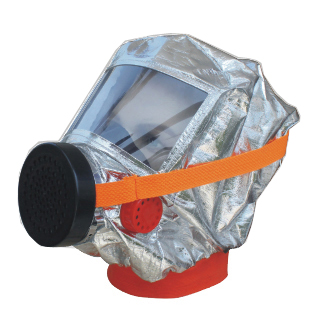 頭罩式(消防頭盔),罩由阻燃隔熱材料做成,大眼窗結構,視野開闊,帶率煙層應用: